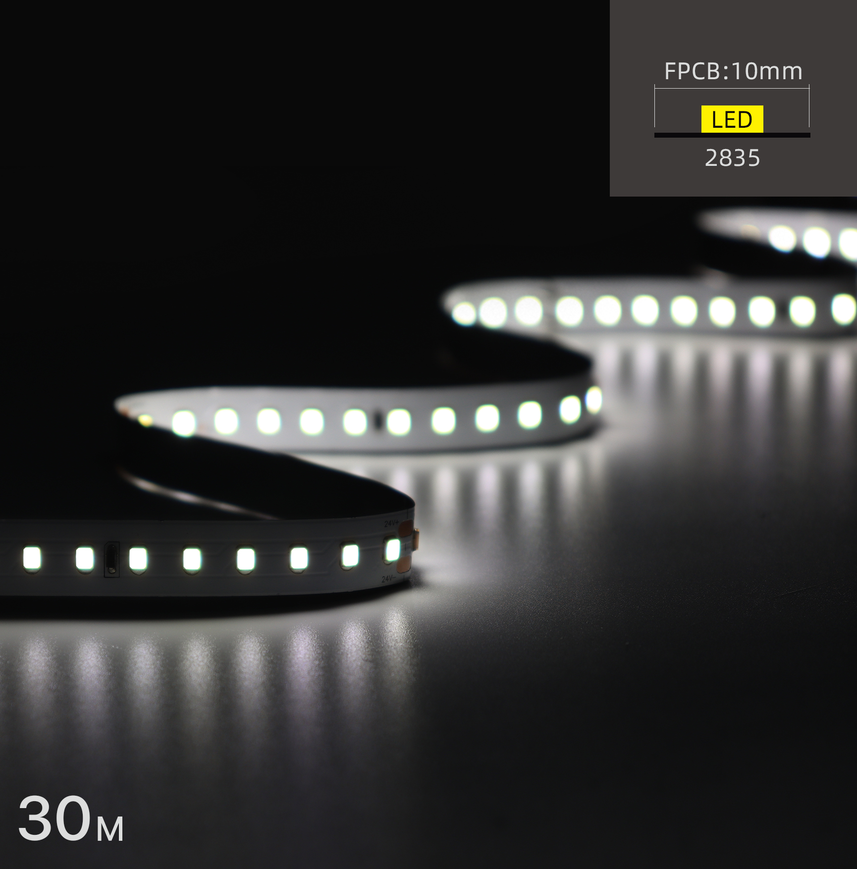 2835LED-W10mm-60LEDs-DC24V-30M